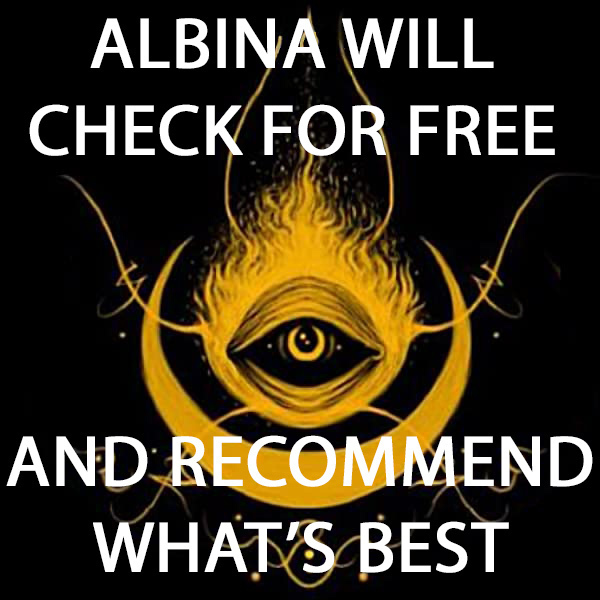 JUST INCLUDE THIS WITH YOUR ORDER AND ALBINA WILL CHECK AND LET YOU KNOW WHAT SHE THINKS ABOUT WHAT IS HAPPENING AND WHAT WOULD BE THE BEST SPELL OR MAGICKAL FOR YOU