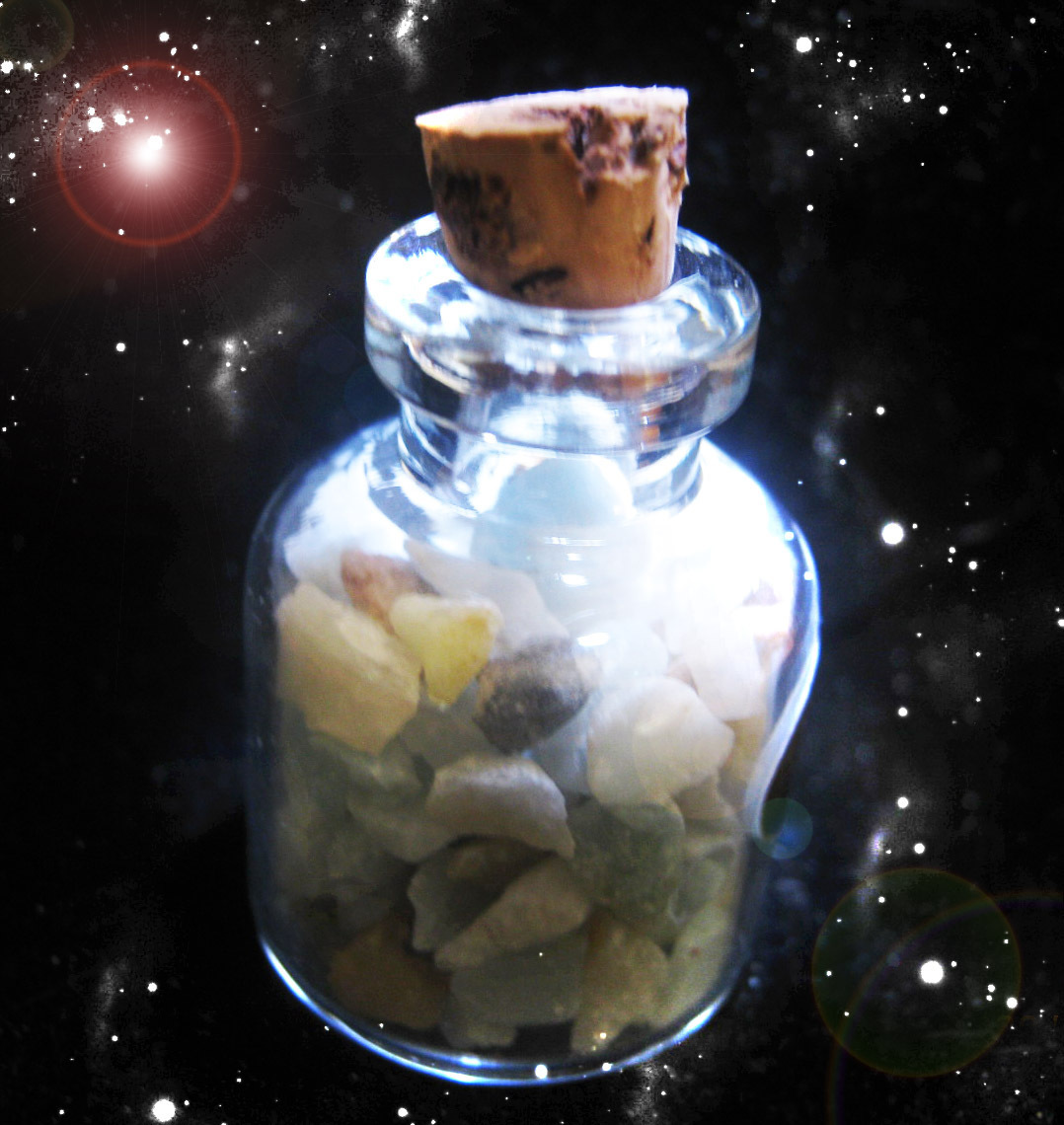 ABOUT THE VIAL : SMALL 2 1/4" X 1 1/4" GLASS CORKED VIAL FILL WITH BLESSED BANISHING AND PROTECTION STONES